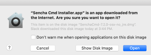 - For MacOS: Right-click and open the .app file unzipped in the previous step. If you see the following message, click ‘Open’ and continue. The app is safe to use.