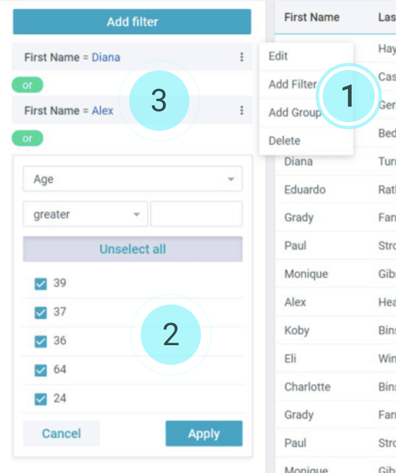 A combo box component with an integrated grid popup and search field at the top for enhanced data selection and filtering.